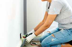 person holding multimeter beside white painted wall